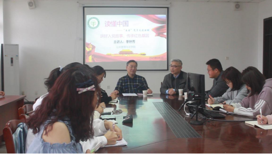 在汇文楼C501举行了“读懂中国”主题教育座谈会。本次座谈会邀请原党办校办主任、关工委季钟秀老师作为嘉宾与学生座谈交流,学院党委书记胡卫东、团委书记邢维迢和学生代表参加了本次座谈会。