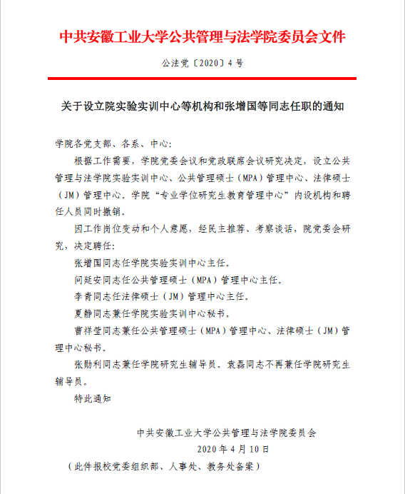 关于设立院实验实训中心等机构和张增国等同志任职的通知