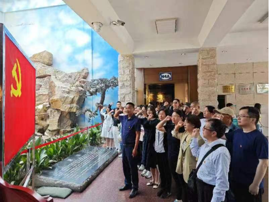 党员师生们参观了江苏茅山新四军纪念馆,认真聆听工作人员讲解,深入领会学习陈毅、粟裕等老一辈革命家的光辉形象和英雄事迹,深深震撼于苏南人民奋起抗击日本侵略军、茅山抗日根据地的开辟、茅山新四军东进北上、苏南抗日根据地的艰苦坚持、苏南人民夺取抗日斗争胜利的这段光辉历程。怀着对革命先烈们英勇奋战、舍身报国的敬仰之情,全体党员在雕塑前,面向党旗庄严重温入党誓词。