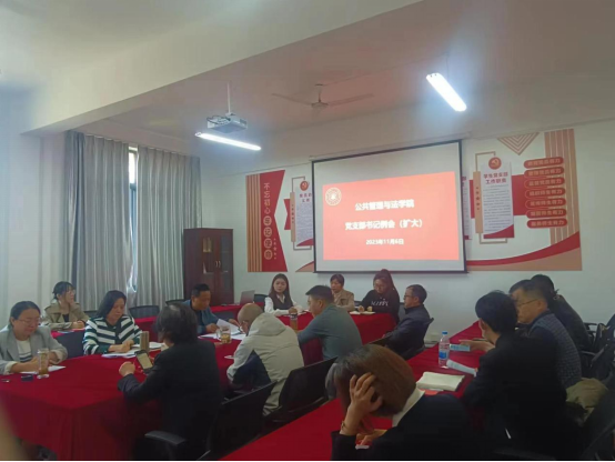在学院305党员活动室召开党支部书记(扩大)例会,学院党委书记胡正友、正处级组织员江文丽、党委秘书(组织员)鲁先友、学院在校党支部书记、副书记、支部委员参加会议,会议由胡正友主持。