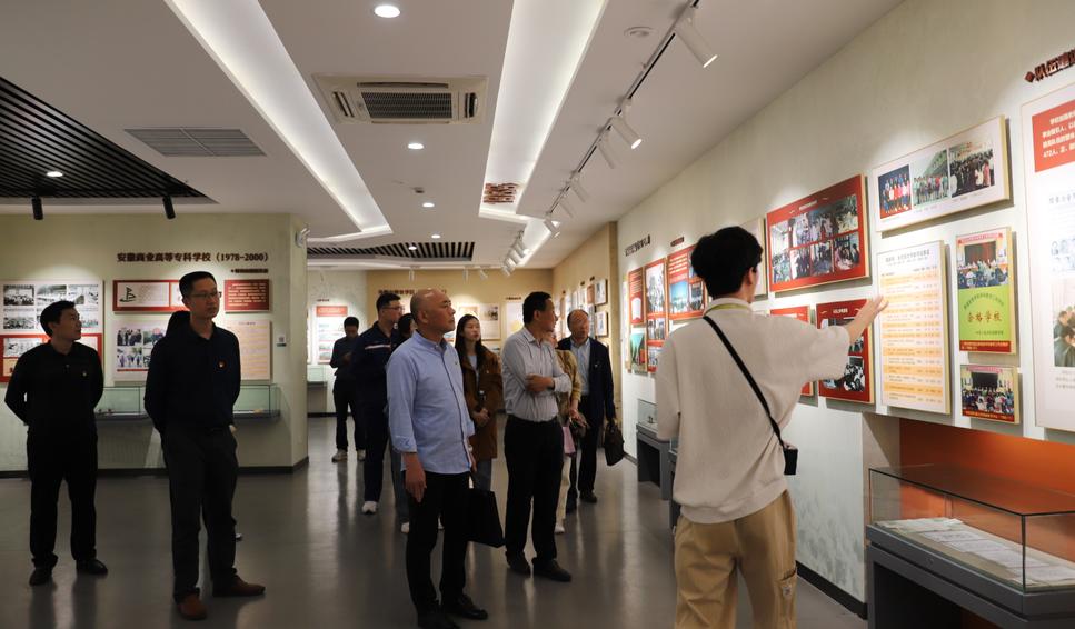 校史馆,同志们跟随讲解员一起追溯学校改革发展建设历程中取得的成绩,品味学校在不同历史时期为国家和地方经济建设做出的重要贡献,通过校园全景沙盘、实物、图文等,多维度了解感受学校走过的六十五载光辉历程。之后,同志们还参观了佳山校园,考察了正妹
