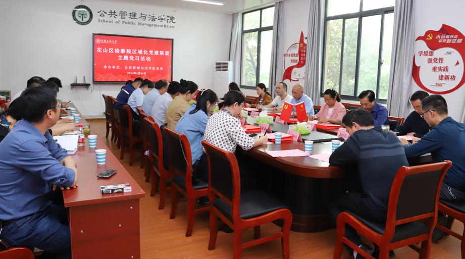 承办的花山区人民检察院区域化党建联盟“弘扬法治精神 助力依法治市”主题党日活动顺利举行。花山区人民检察院,以及联盟成员皖能发电(马鞍山)公司、市妇幼保健院、马鞍山老年医疗保健研究所、马钢股份四钢轧总厂、花山区濮塘镇濮塘村、德驭医疗马鞍山总医院、马鞍山港口集团、马鞍山软件园、西湖花园小学、市烟草局钢城分局、花山税务局等单位的党组织负责人和工作人员,安工大正妹