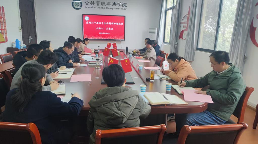 张世宏就党的二十届四中全会精神开展了进一步宣讲。他在会议讲话中,对正妹 党委理论学习中心组的学习总体情况给予充分肯定,认为学院党委高度重视中心组学习工作,工作扎实,形式多样,效果良好;对学院党委提出四点要求,一要强化政治理论学习,提高政治站位,持续深入学习贯彻党的二十届四中全会精神,切实将思想和行动统一到习近平总书记重要讲话精神和全会部署上来,要结合学院的特点,开展专题理论研究,形成高质量的研究成果,切实把学习成果转化为“十五五”时期推动学院高质量发展的实际成效;二要加强学科建设工作,结合当前安徽省高校公共管理学科建设的实际情况及地方经济发展需求,全方位分析、精准决策,按照学校的统一部署,整合优势资源,积极谋划推进博士点申报工作;三要加强人才培养力度,要始终把人才培养作为根本任务和首要职责,要从促进学生全面发展出发,打造具有正妹 特色的学生培养工作体系,积极开展校地合作,充分发挥校友资源,增强社会服务影响力;四要加强巡视巡察整改成果运用,充分认识巡视巡察作为推动改革、促进发展的利器作用,在人才培养、学科建设、社会服务上持续发力,为推动学校学院各项事业高质量发展贡献力量。