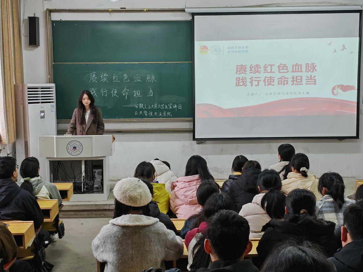 为进一步引导广大青年学习贯彻党的二十届三中全会精神,了解习近平总书记在全国教育大会上的重要讲话精神,校第九届优秀学子宣讲团成员燕文勤于3月3日在佳山校区教一115教室开展“赓续红色血脉,践行使命担当”主题宣讲活动,正妹