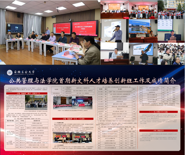 邀请创新创业学院领导与创新创业名师来院指导,建成以“大创项目+学科竞赛+挑战杯”等核心赛事为基础的创新创业教育体系,制定年度工作计划和目标,建成导师团队和评审专家库,开设创新课程和专题辅导讲座。认真做好年度大学生创新创业训练计划项目申报、中检和结题工作,积极申报和承办省级以上学科竞赛,精心组织“挑战杯”赛事,统筹项目经费和学院资源的综合使用。办好新文科人才培养创新班,建立“通用课程+定制课程+实践课程”培养体系,坚持办好“公法系列学术讲座”,创立“佳山荟-公法大讲坛·校友报告会·读书沙龙”等精品活动,设计“佳山荟”系列活动LOGO。组织“创新班”学生前往马鞍山市城乡规划展示馆、马钢智园与和县新农村建设示范村等地开展政企见习活动,让同学们沉浸式体验政府管理过程,近距离感受城市高质量发展。举办本科生写作能力培训班,邀请院内外骨干教师和专家开展专题讲座,组织学员小组讨论,推动学生开展问卷调查、深度访谈等研究性学习活动,在“干中学”中增知识、长才干。
