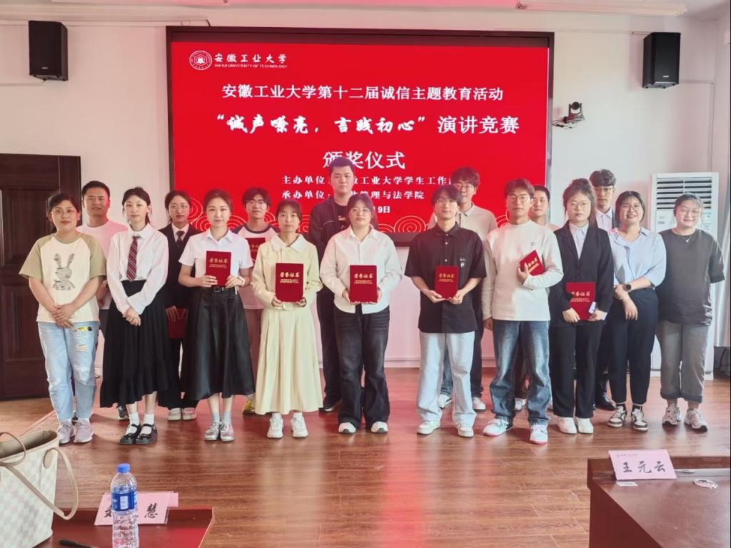 于5月19日14时在公法楼301教室成功举办了第十二届诚信主题教育活动“诚声嘹亮,言践初心”演讲竞赛。化学与化工学院的王元云老师、外国语学院的刘晓慧老师、能源与环境学院的吴飞老师、正妹