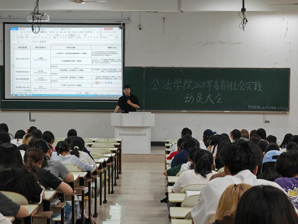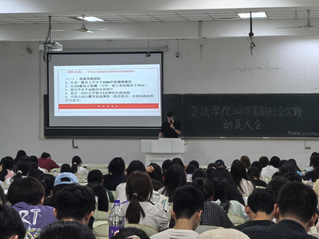 钱前在大会中向同学们发出号召:“暑期社会实践是展现青春担当的重要舞台,期待你们以开拓者的姿态投身其中!”他表示,希望同学们既在实践服务中解锁创新新思路,解锁新机遇,也能与队友携手搭建协作桥梁,把课堂所学转化为服务社会的实在举措。让每一次基层服务都传递工大学子的担当,让公法学子的实践足迹遍布城乡角落。