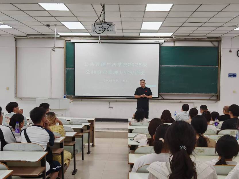 法学、行政管理、劳动与社会保障、公共事业管理四个专业系主任都首先对2025级新同学的到来表示最热烈的欢迎和最诚挚的祝贺。各系主任勉励新生要尽快完成角色转变,广泛涉猎人文社科知识,打下坚实学识基础,在未来的学习中锤炼并培养独立批判精神,鼓励新生们多多参与学科竞赛,以公法院训“崇德尚法,公为天下”为目标,努力成长为德法兼修的高素质人才。