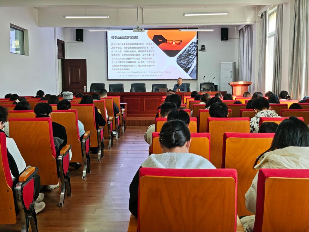 第二课堂管理中心于2025年12月9日下午在公法楼301报告厅举办“数智营销”微专业宣讲活动。本次活动特邀请商学院刘成教授担任主讲,学院2023、2024级本科生积极参加。