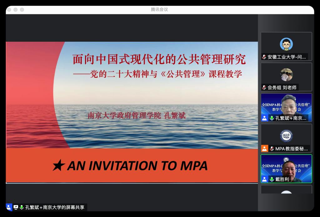 为学习贯彻落实党的二十大精神,持续优化公共管理教学,在公共管理研究生教育中推广案例教学方法,全国公共管理专业学位研究生教育指导委员会通过腾讯会议于2022年12月3日至4日举办了全国MPA核心课程“公共管理”教学与案例研讨会。全国共有257名教师相聚云端,正妹