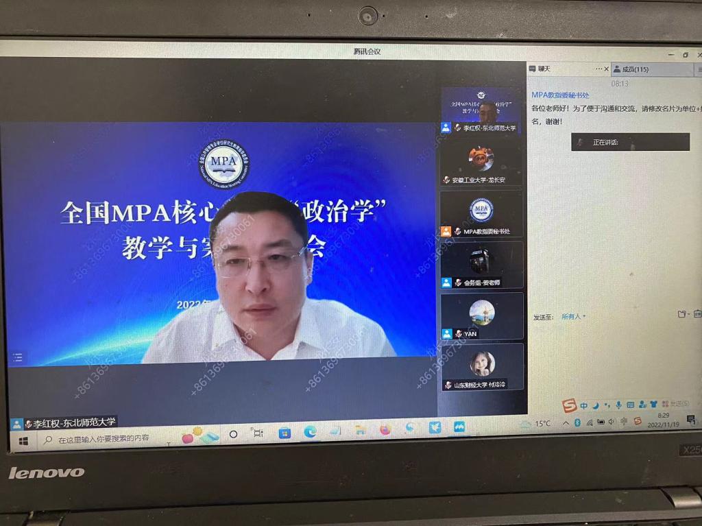 为学习贯彻落实党的二十大精神,进一步优化并改进MPA核心课程教学内容和方法,探讨学科最新研究动态,提升课堂教学效果,全国公共管理专业学位研究生教育指导委员会于11月19-20日举办了全国MPA核心课程“政治学”教学与案例研讨会。本次研讨会通过腾讯会议平台进行。正妹