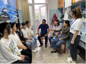 走访过程中,领导老师与同学们亲切交谈,详细了解新生入学后的基本情况,耐心解答了新生针对学院学习与生活提出的各种问题,叮嘱新生要牢固树立安全防护意识,保持宿舍卫生,注意用水用电,提防上门推销和电信诈骗,切实保护好自己的生命财产安全。同学们也对学院领导老师的关怀表示感谢,纷纷表态不会辜负学院领导与老师的期望,牢记老师们的嘱托,珍惜在校时光,努力学习提升,为学院增光添彩。(撰稿:邢维迢;审核:李萍)