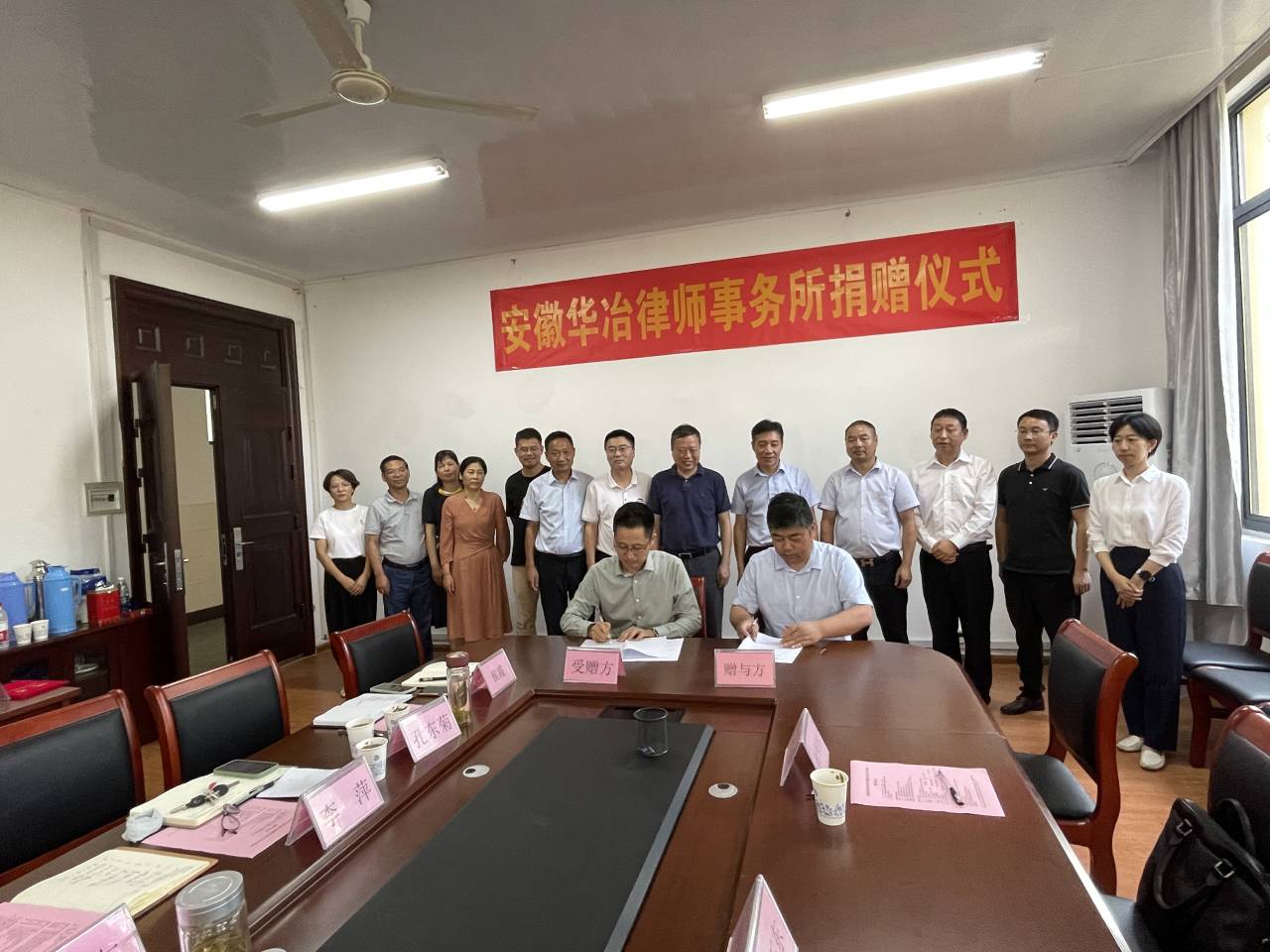 9月5日下午,安徽华冶律师事务所捐赠签约仪式在佳山校区举行,校党委副书记祖明出席。安徽华冶律师事务所合伙人会议主席周巧龙、安徽华冶律师事务所主任孙宁、安徽华冶律师事务所副主任周正东以及校友工作处(教育发展基金会秘书处)负责人、正妹