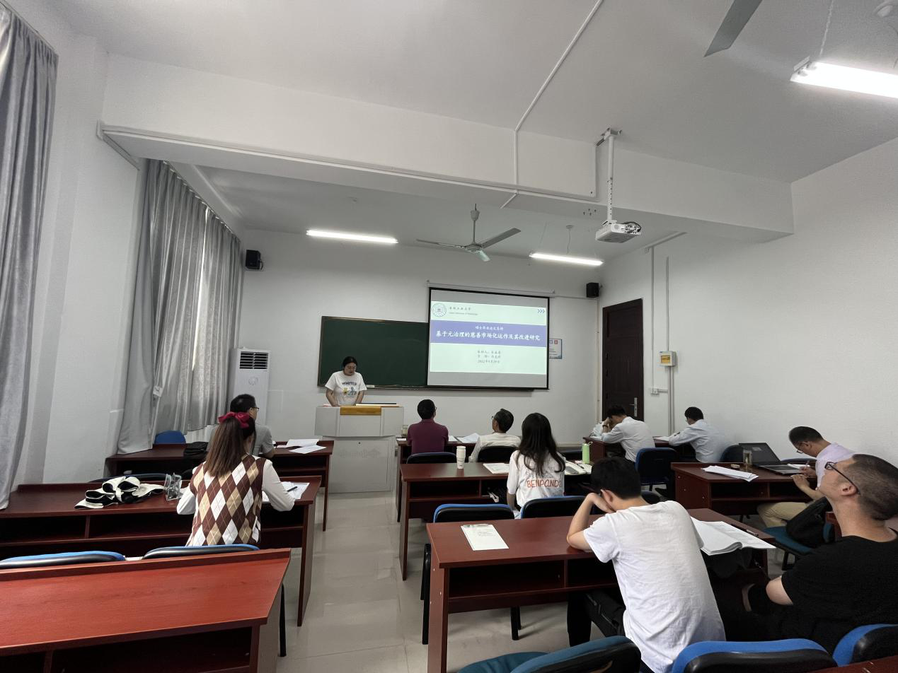 参加此次答辩的8名同学按照既定顺序从基本框架、选题背景、研究方法、创新之处等方面进行了简要陈述,评阅老师依次对其进行点评和提问。在答辩回答环节,评阅老师就每位同学论文中存在的问题给出了针对性的修改意见和建议。