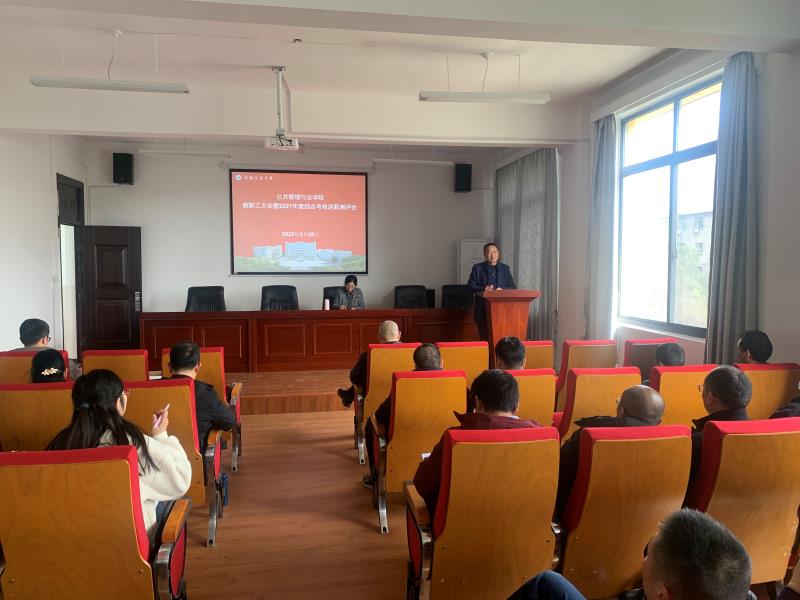 在学院学术交流中心召开教职工大会暨2021年度综合考核述职测评会,学院全体教职工和学生代表等参加了会议,学院党委副书记、副院长、纪委书记李萍主持会议。