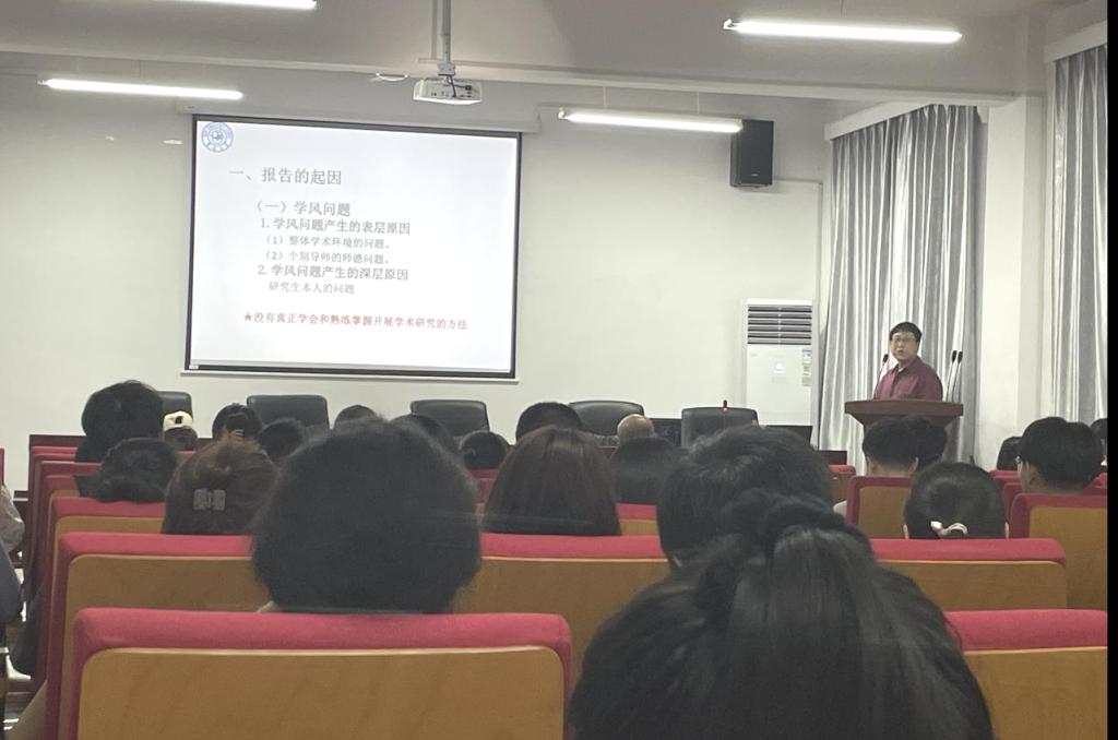 开展学术讲座,并于公法楼301作了题为“学术研究的基础与关键”的报告。讲座由杨哲副院长主持,学院教师、研究生及感兴趣的本科生参加。