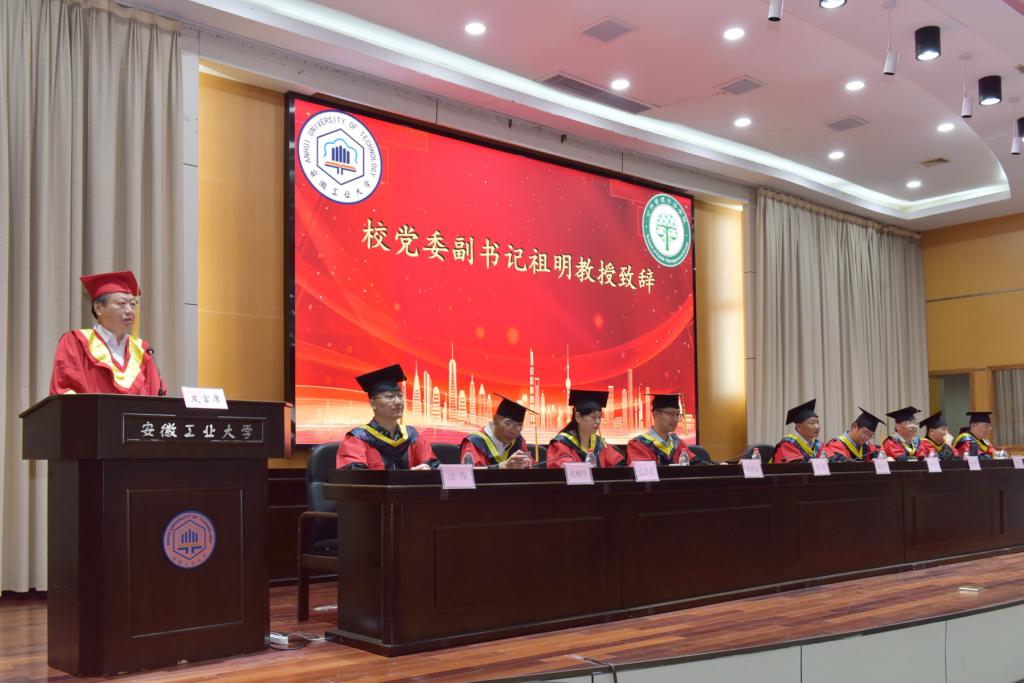 祖明代表学校向顺利完成学业的毕业生表示祝贺,向悉心培养学生的老师表示感谢。他肯定了2023届毕业生在校期间取得的累累硕果表示赞扬,并提出三点希望。一要不忘初心、坚守理想,做逐梦人。要与党同心、与时代同行,向优秀的榜样学习,以一往无前的奋斗姿态投身现代化征程,为全面建设社会主义现代化贡献澎湃的青春力量。二要不忘初心、提升境界,做思考者。要让学习成为一种生活方式和一种精神追求,不断保持思想活力,把心静下来,把责任扛起来,爱岗、敬业、奉献社会。三要不忘初心、砥砺前行,做奋斗者。既要仰望星空,又要脚踏实地,既要开拓进取,又要勇于创新,奋力当好挑战极限的攀登者,让青春在党和人民最需要的地方绽放绚丽之花。