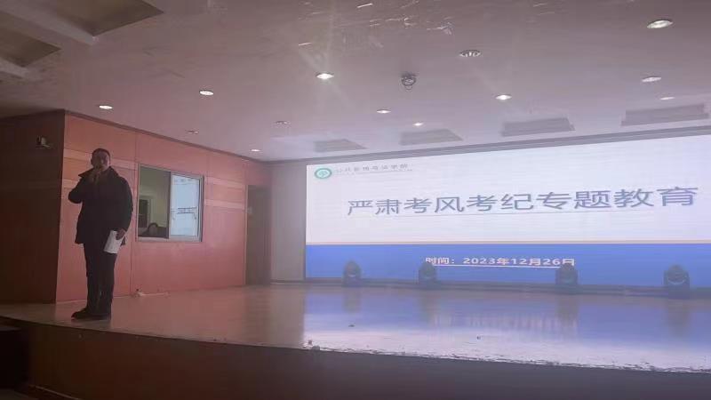 于本部大学生活动中心召开了严肃考风考纪专题教育会,会议由学院党委副书记、学生工作副院长周浩然主讲,全体辅导员和各年级同学们参加会议。