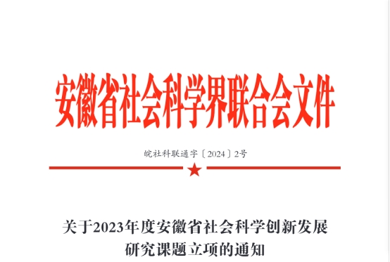 2024年2月5日,安徽省社会科学界联合会发布了《关于2023年度安徽省社会科学创新发展研究课题立项的通知》(皖社科联通字〔2024〕2号),公布了安徽省社会科学创新发展研究课题项目立项名单。正妹
