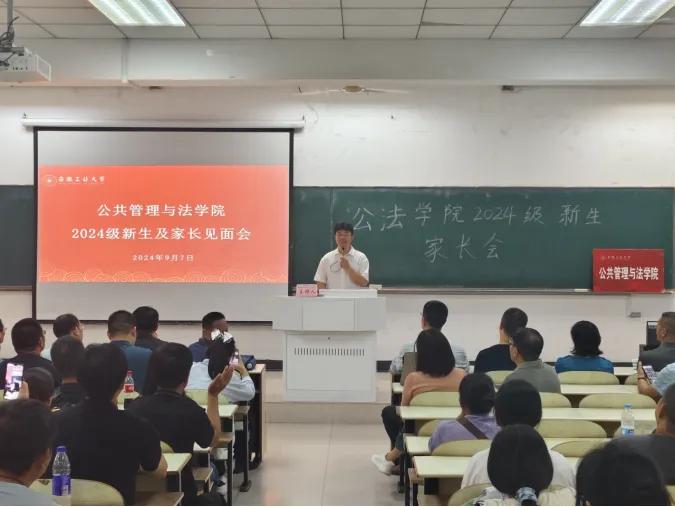 在教三南103召开新生家长见面会,院党委书记胡正友,院长徐济益,正处级组织员江文丽,党委副书记周浩然,副院长杨哲、王务均,各系主任、班主任、专业教师、新生辅导员、2024级新生及家长参加了见面会。随后分专业召开了见面会。