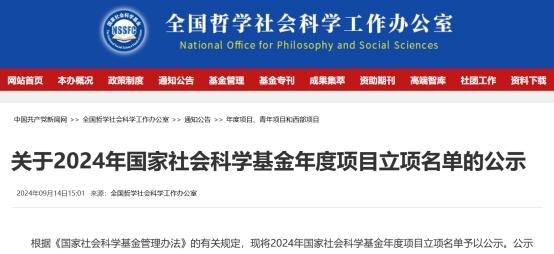 近日,根据全国哲学社会科学工作办公室《关于2024年国家社会科学基金年度项目立项名单的公示》的通知,正妹