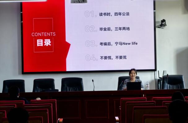梁转转讲述了自己大学学习和学生工作经历、毕业后在企业工作的经历以及南京考编上岸经历,希望大家“不要慌、不要荒”,要着眼未来、谋在当下、持续学习、自律自强。讲座结束以后,同学们踊跃地提出了各种关于学习和考编的相关问题,梁转转一一进行了认真解答。