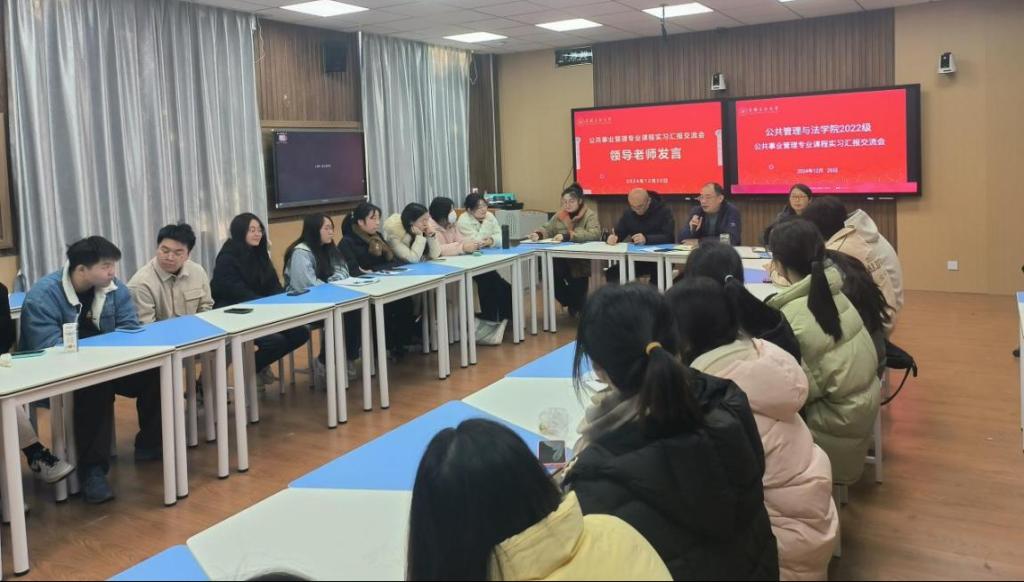12月20日上午,公共事业管理专业课程实习汇报交流会在公法楼201教室举行。此次交流会是对近期完成的《公共部门实务见习》课程实习活动进行总结汇报和分享。副院长王务均、系党支部书记施磊磊、任课教师施富兰、辅导员陈云老师参加会议。陈雨彤同学主持会议,全体实习同学做了汇报交流和分享。