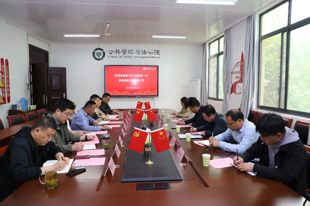 胡正友书记代表学院向祁门县一行表示热烈欢迎。他从学科建设、人才培养、社会服务等方面全面介绍了学院建设和发展情况,指出学院始终坚持“开门办学”理念,希望以此次调研为契机,通过课题研究、基层调研、专业实习基地共建、学生就业等多元途径,与祁门县在公共事务治理、法治政府建设、文旅资源开发等领域搭建常态化沟通桥梁,希望祁门县各部门为学院人才培养工作提供更多实践指导与资源支持。