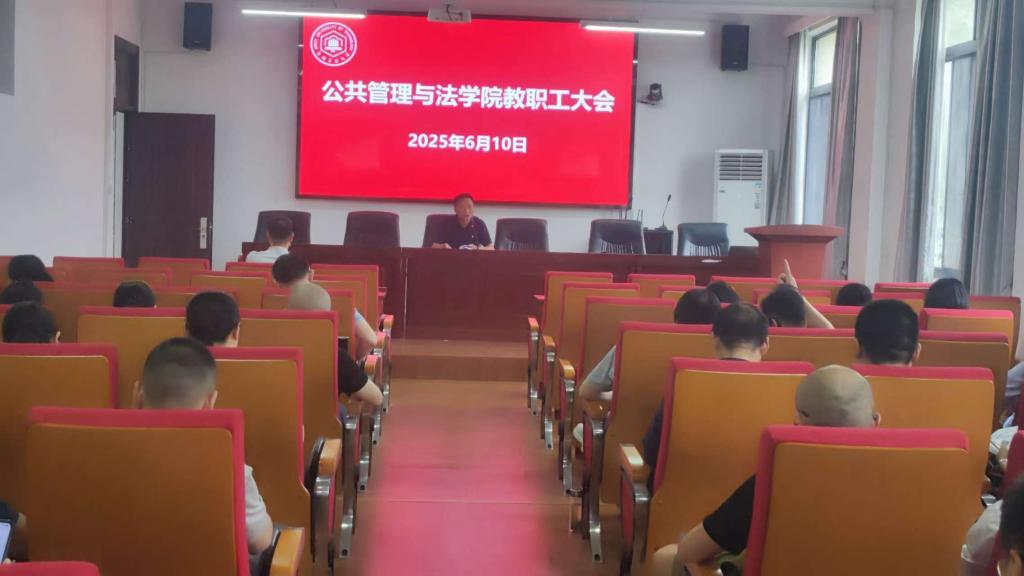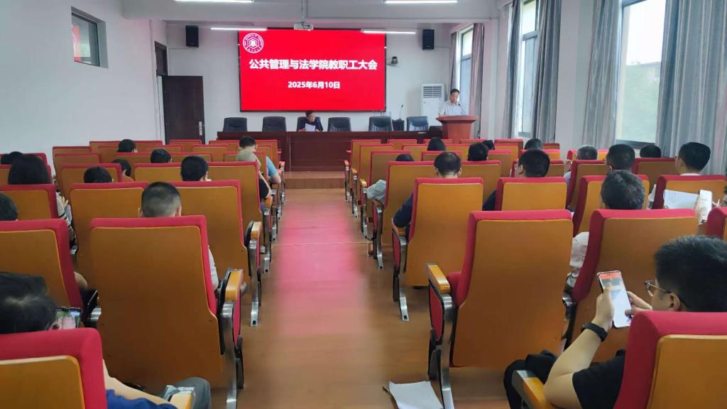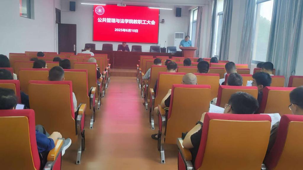 在学院301报告厅召开全体教职工大会,会议由学院党委书记胡正友主持。