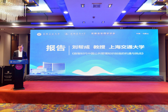 副院长(主持工作)杨哲教授主持。全国公共管理专业硕士学位教育指导委员会委员、上海交通大学国际与公共事务学院副院长刘帮成教授作了题为《数智时代中国公共管理知识创造的机遇与挑战》的报告;全国公共管理专业硕士学位教育指导委员会委员、南京大学政府管理学院教授李鹏作了题为《数字政府的技术制度双向调试治理》的报告;湘潭大学教授、湖南省行政管理学会副会长梁丽芝、作了题为《数字乡村治理中的基层干部“技术增负”:样态、生成与规制》的报告;安徽日报理论部副主任、编审程铁军作了题为《报纸理论文章写作要领》的报告。