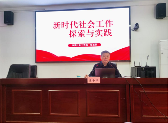 院作了题为《新时代社会工作探索与实践》的专题学术报告。市委社会工作部办公室负责人刘文强,学院“马鞍山市社会工作发展研究基地”研究人员、2025级研究生及部分创新班学生聆听了讲座,学院副院长王务均主持报告会。